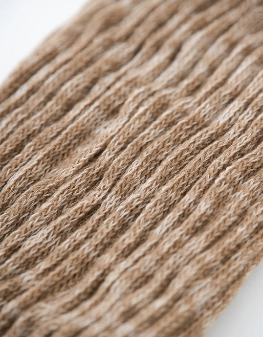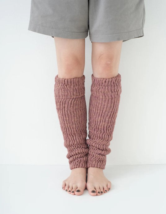 1重で太ももの付け根まで届く長さで、2重にして短くすると、膝までの長さになりボリュームUP。また、素足に使用してもチクチクしないように、配合や構造に工夫を重ね、ふんわりとした肌触りが心地良いレッグウォーマーに仕上げました。