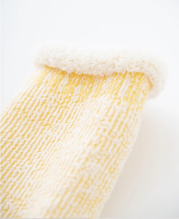 特殊なアメリカンパイル編みを採用することで、圧倒的ボリュームとふかふかな履き心地を実現。デザインもナチュラルに仕上げ、味のある色に仕上げました。透明な滑り止めを付けることで、安心感もプラス。フローリングの冷たさから足を守る、家中時間には欠かせないアイテムとなりました。