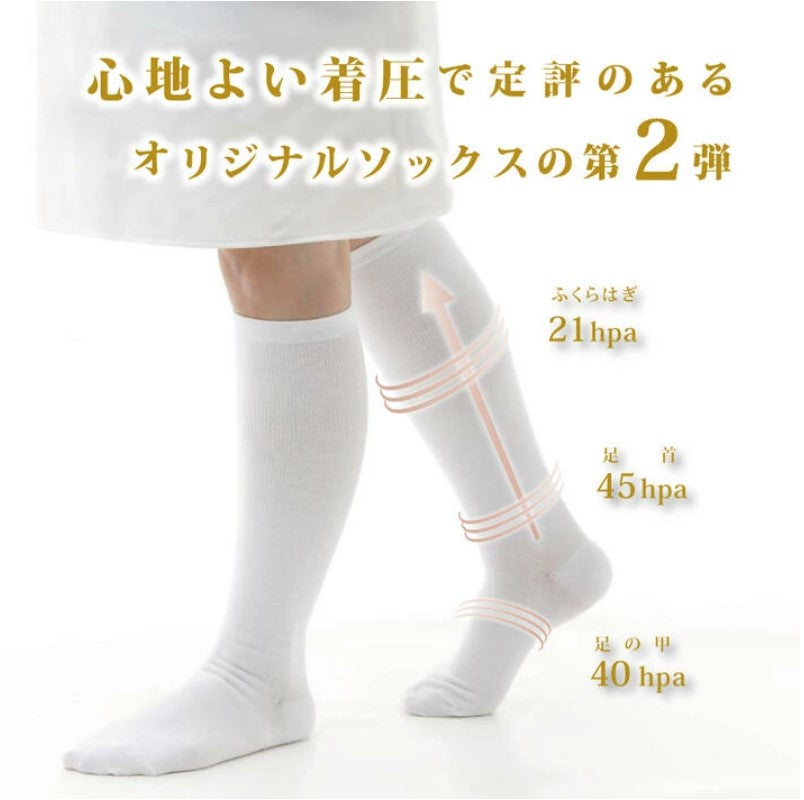 立ち仕事、デスクワークむくみが気になる方へおススメしたい着圧ソックスです。