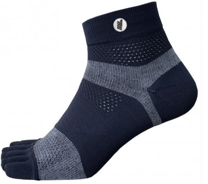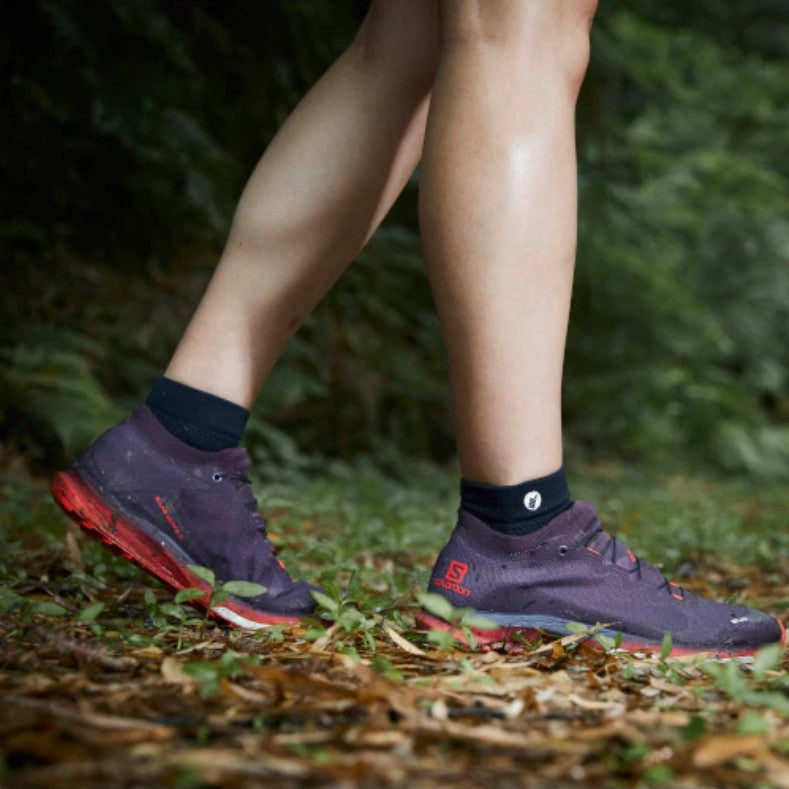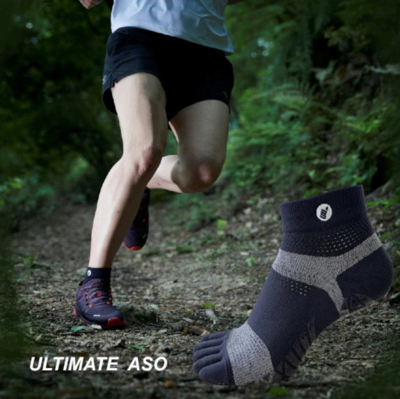 極力薄く作ることで、より靴・足との一体感を高めており、地面を確実にグリップしながら走ることができます。また、加圧もきつめに入れているため、血流が促進され足への疲労蓄積を軽減させております(着圧ソックスと同じ原理)