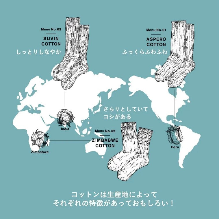 ペルーのアンデス高地で栽培されたアスペロコットンは繊維に弾力があり、保温性と吸湿性が高いのが特徴。