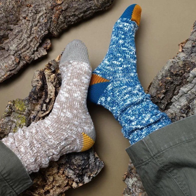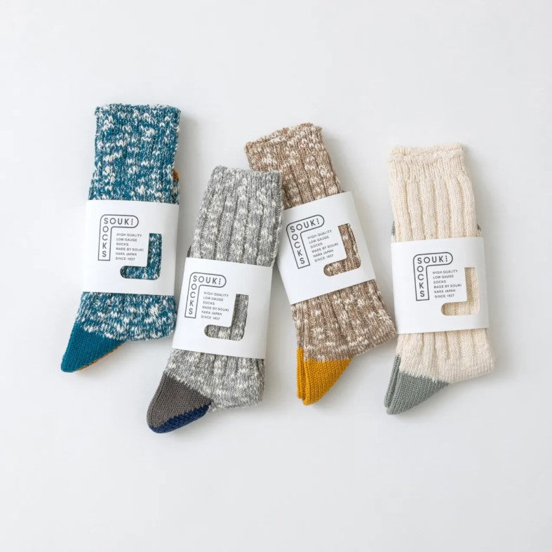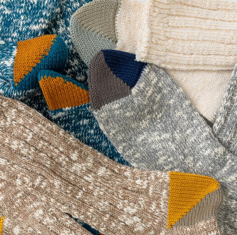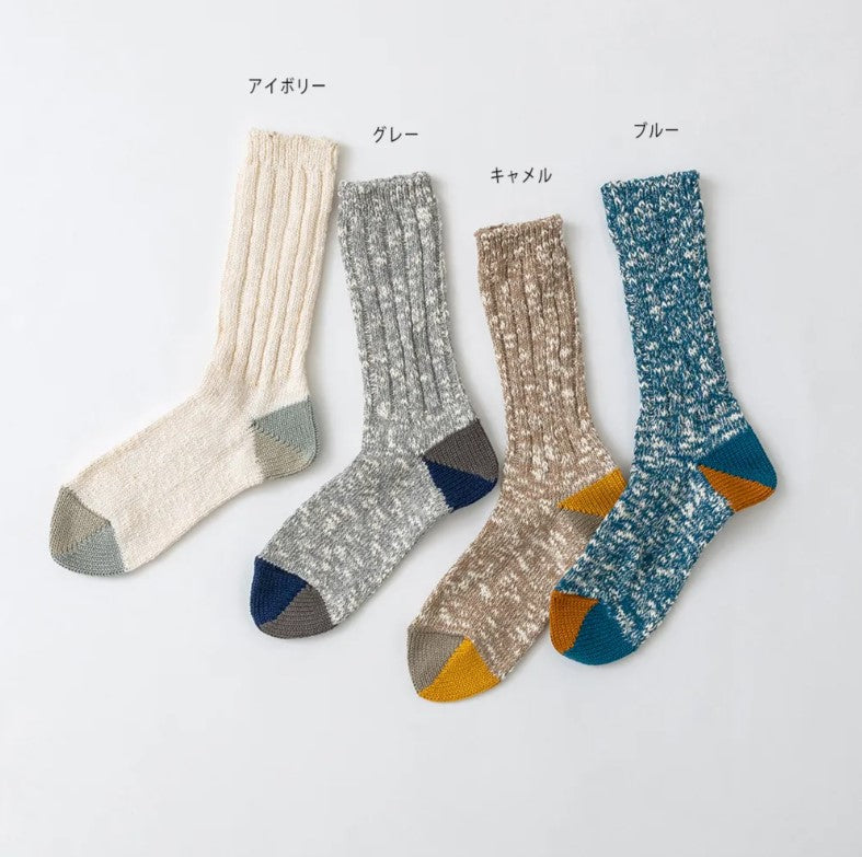 ぷっくりと大粒のコットンスラブ糸とコーマ糸をふんわりとミックスさせながら編んだ有機的なテクスチャーが魅力のコットンスラブソックス。